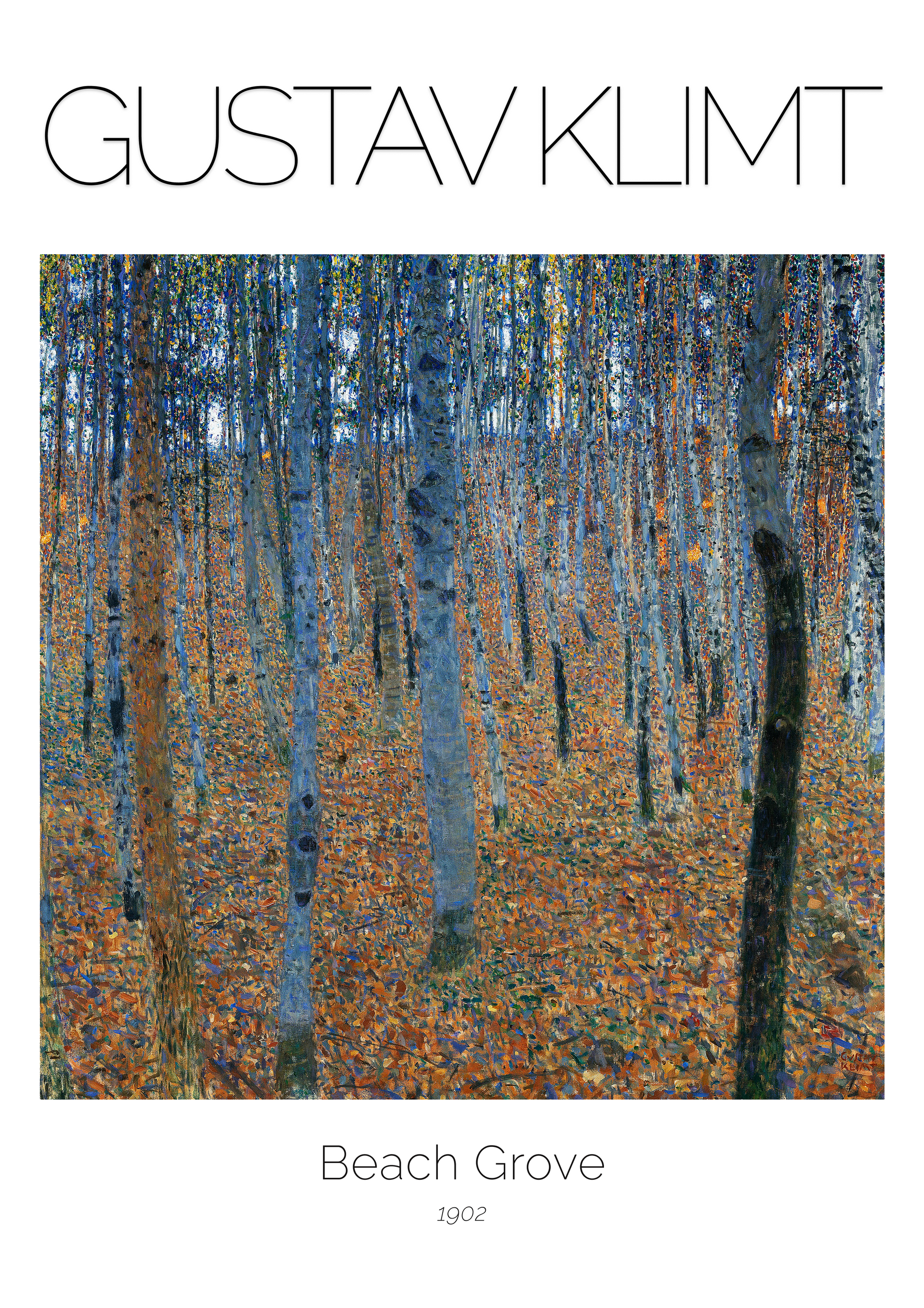 In this mesmerizing forest scene, Klimt focuses on the vertical rhythm of beech trunks and the golden carpet of fallen leaves. The "all-over" composition creates an immersive, meditative experience that feels like standing in the heart of a silent, sun-dappled wood. This piece is a masterclass in texture and natural pattern, making it a serene addition to any minimalist or nature-inspired interior.