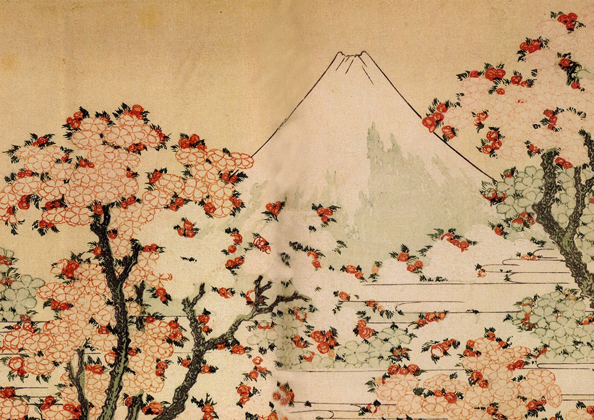 Hokusai Mount Fuji Behind Cherry Trees