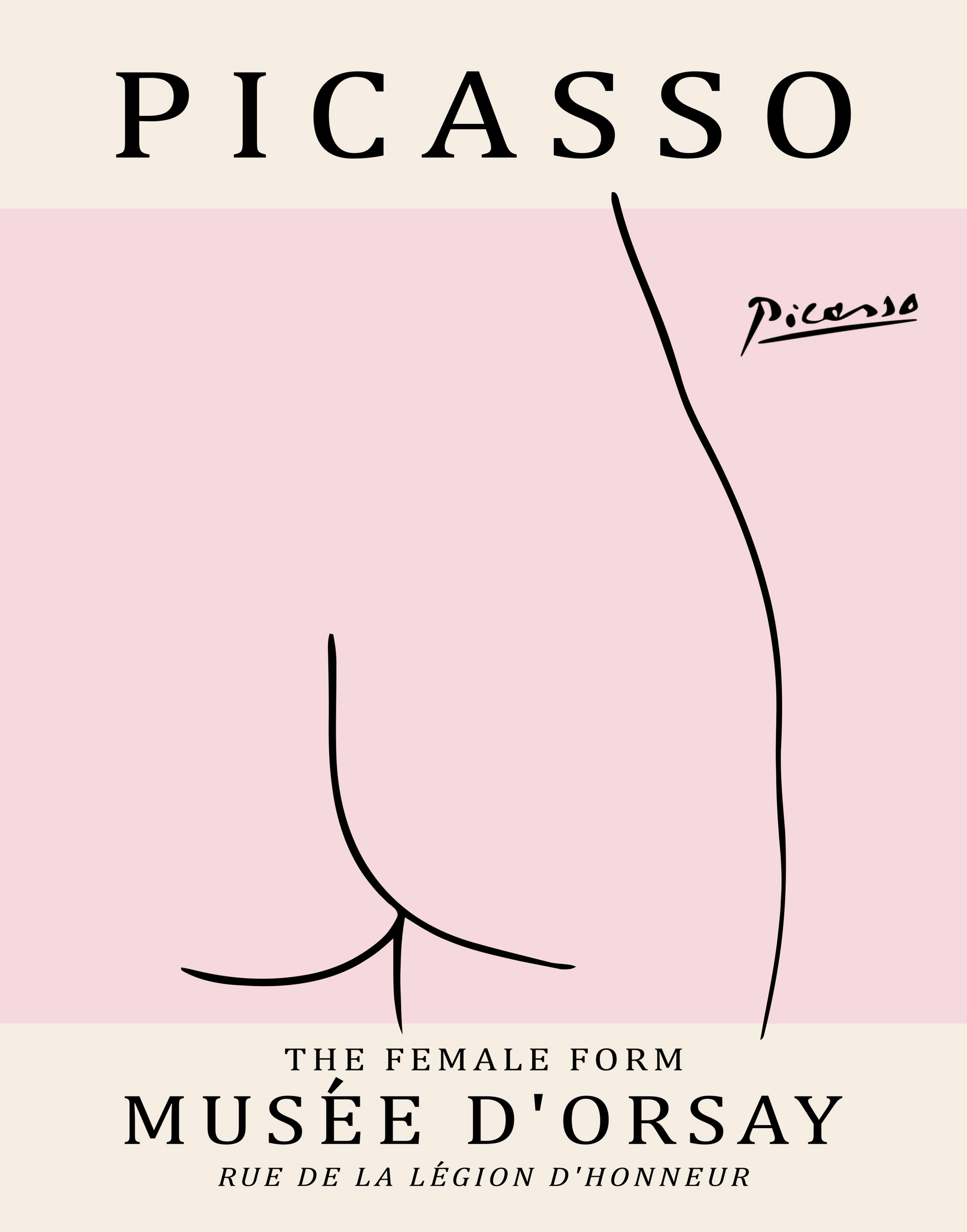 Celebrating the beauty of the human form, this minimalist figure drawing highlights Picasso’s skill in anatomical simplicity. The graceful, single-line curves make this a tasteful and sophisticated piece for those who appreciate the elegance of classical life-drawing in a modern format.